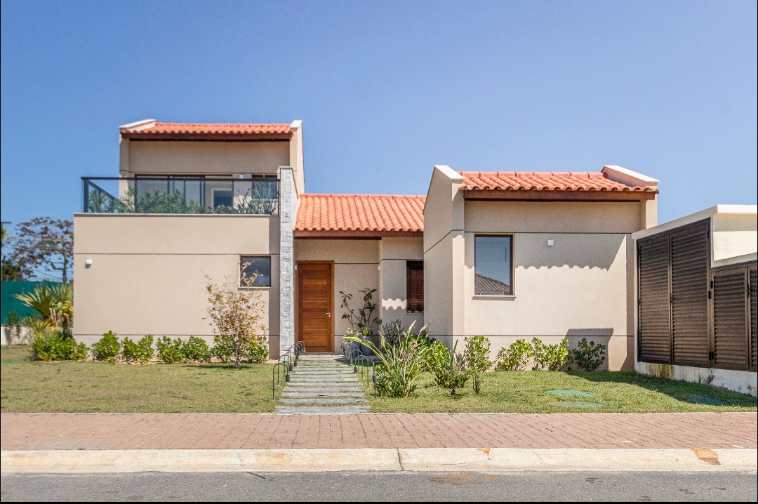 A casa está localizada no Condomínio Aretê, um condomínio moderno e de alto padrão em Búzios.