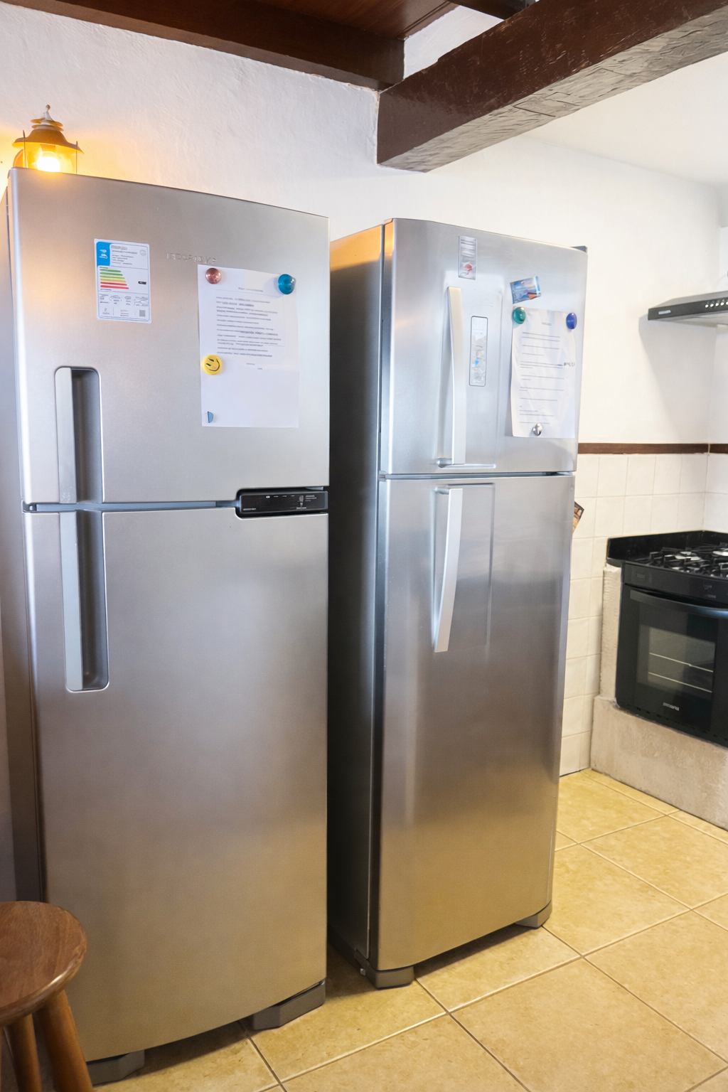 Para maior praticidade durante os dias de praia, a casa ainda oferece um grande isopor para bebidas, evitando sobrecarregar a geladeira.